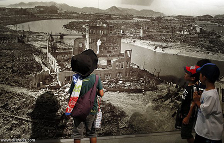 وألقّت طـائرة أمريكية قنبلة نووية على هيروشيما يوم 6 غشت 1945، فهلكت على الفور حوالي 140 ألف شخص، ثم عادت بعد ثلاثة أيام لتلقي قنبلة أخرى على مدينة ناغازاكي حيث قتل عشرات الآلاف.
