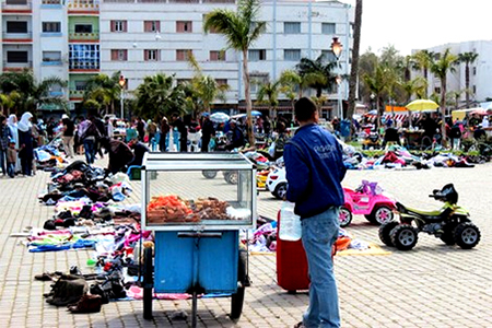 ولا تختلف الحالة بطنجة عن سواها من المدن الأخرى في ما يخص الباعة المتجولين، بل يمكن القول بأن حالة طنجة استثنائية بكل المقاييس، فقد شهدت المدينة تضخما عجيبا في أعداد هؤلاء الباعة حيث ضاق بهم “رأس المصلى” لينتشروا في كل الاتجاهات داخل أزقة ودروب المصلى ثم ليقتحموا شارع المكسيك وساحة فرنسا وشارع باستور وشارع محمد الخامس وشارع فاس إلى ساحة الأمم، ثم ليحتلوا بالكامل شارع الحرية وساحة 9 أبريل والصياغين، وطريق إيطاليا والأحياء المجاورة. المهم، أن المدينة الحديثة والعتيقة توجد تحت “سيطرة” “تجار الشانطة” أو تجار “رزمات البلاستيك الأخضر”.