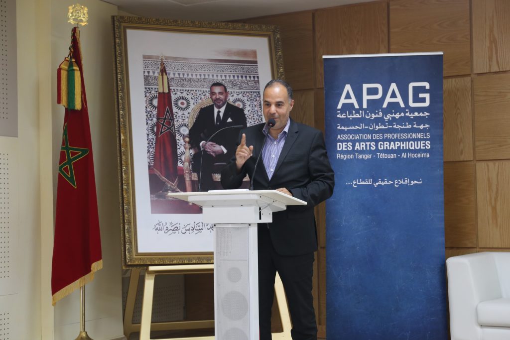 من جهته، ألقى رئيس جمعية “مهنيي قطاع فنون الطباعة” السيد نبيل إفزارن، بعد ترحيبه بالضيوف والحضور، كلمة أشار من خلالها إلى أهمية التكوين المتجلية في مواكبة