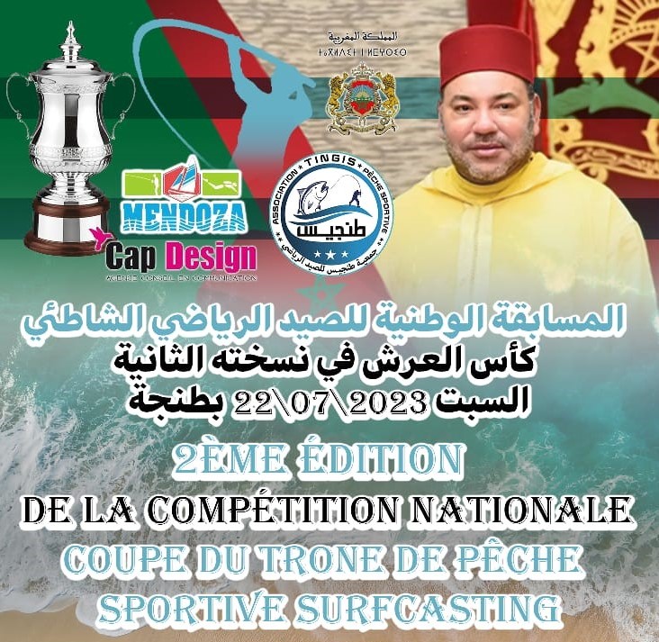 تخليدا لذكرى عيد العرش المجيد، وتنفيذا لبرنامجها السنوي، وبتنسيق مع المديرية الإقليمية لوزارة التربية الوطنية والتعليم الأولي والرياضة، ومندوبية الصيد البحري بطنجة، تنظم “جمعية طنجيس للصيد الرياضي بطنجة” النسخة الثانية من المسابقة الوطنية للسورف كاستينغ بنظام الزوجي كبار تحت إسم “كاس العرش للصيد الرياضي الشاطئي برسم الموسم الرياضي 2022 / 2023”. وذلك يوم السبت 22 يوليوز ليلا بالشاطئ البلدي بطنجة، بداية من واد مغوغة على طول الامتداد شمالا نحو منشاة مارينا.
