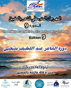 تنظم جمعية العمل الثقافي بالمضيق فعاليات الدورة التاسعة من المهرجان المتوسطي للشعر أيام 13و14و15 دجنبر 2024 بمدينة المضيق.وتشهد هذه الدورة حضور شعراء من فلسطين وسوريا ومصر وإسبانيا والمغرب.